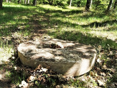 Prezentowany obiekt jest pozostałością po działającym przed wojną w okolicy miejscowości Ubedel (Ubiedrze) młynie wodnym. Składa się z okrągłego betonowego bloku z zatopionymi kamieniami oraz metalowej obręczy wewnętrznej. Na jej powierzchni zachowały się dość dobrze czytelne napisy: "Fabrik Französischer Mühlensteine Wilhelm von Allert Coeslin", dzięki którym możemy dowiedzieć się nieco więcej o samym kamieniu jak i jego producencie. O ile większość napisów da się łatwo przetłumaczyć i połączyć z działającą w Koszalinie (w XIX w. zapisywanym jako Coeslin) fabryką kamieni młyńskich, to zagadkowym pozostaje zwrot "französischer". Po analizie dostępnych materiałów okazuje się, że odnosi się on do popularnych w XIX w. tzw. "francuskich kamieni".