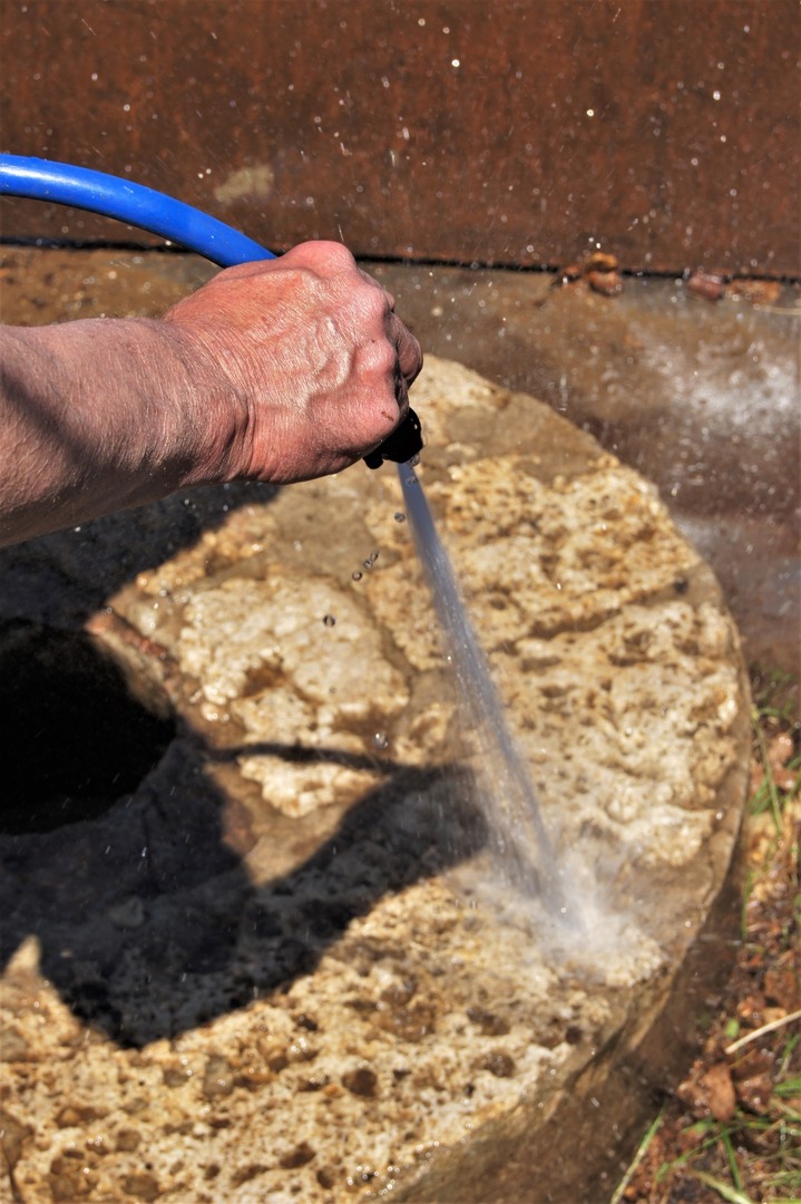 Ostrzenie kamieni młyńskich było skomplikowanym procesem, gdyż nie wystarczyło jedynie pogłębienie rowków. Kamienie zużywają się nierównomiernie - bardziej na zewnątrz niż na środku powierzchni szlifierskiej. Dlatego w pierwszej kolejności należało dokładnie usunąć wszelkie nierówności i wyrównać powierzchnię kamienia, a dopiero później specjalnymi narzędziami poprawić lub odtworzyć rowki systemu aspiracyjnego.