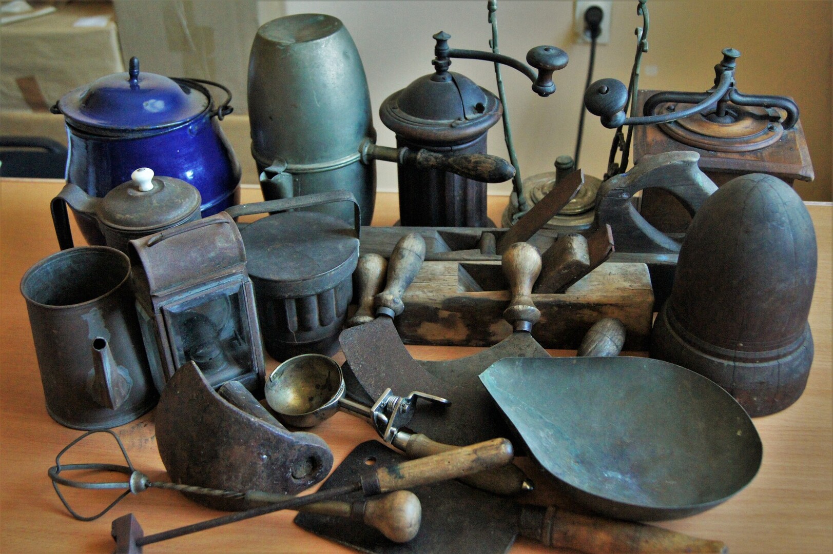 Na zakończenie bardzo miłego, obfitującego w bardzo ciekawe dyskusje na wiele tematów spotkania, otrzymaliśmy w darze pokaźny zbiór zabytkowych przedmiotów, które wzbogaciły ekspozycje wielu działów naszego muzeum. Wśród nich wymienić można stare młynki do kawy oraz kawiarki, heble do drewna, lampę naftową, formę do ciasta, narzędzia kuchenne, drewnianą formę do wytwarzania kapeluszy, radia, magnetofon czy sprzęt fotograficzny.