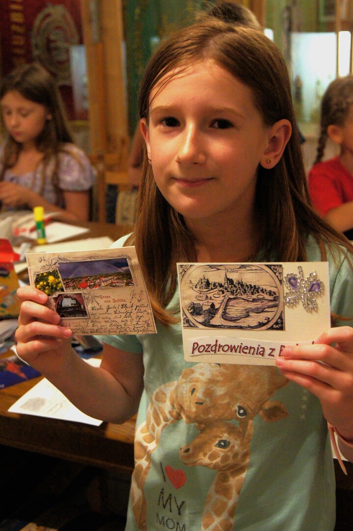 Dziś, w ramach drugiego z cyklu ośmiu spotkań wakacyjnych w naszym muzeum, tworzyliśmy wraz z dziećmi prawdziwe wakacyjne pocztówki